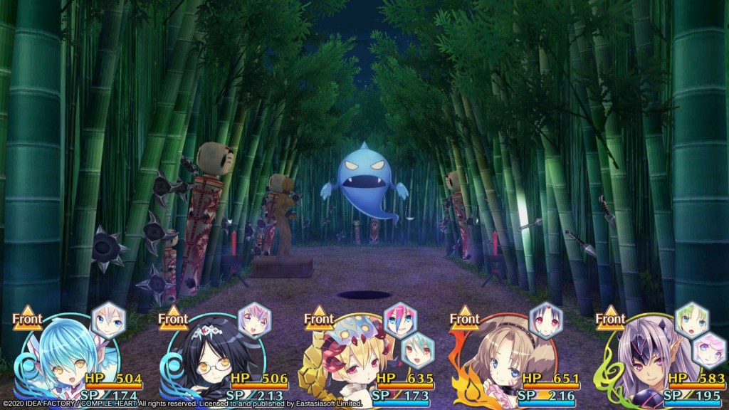 As players traverse the dungeons, enemies will appear both randomly and at preset points, attacking the player and initiating battle. At the beginning of combat, the turn order for party members and enemies is determined by their agility stats. When the turn for each party member occurs, several options are presented, with distinct options for Zenox and the monster girls. The options in combat are as follows;