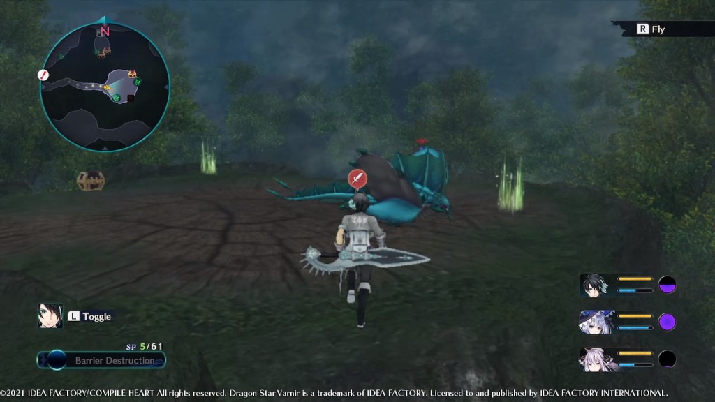 Exploration: the core of the gameplay, takes place in the various dungeon environments throughout Varneria, which can be explored in a roaming third person perspective. While inside the dungeons, players can find treasures, hidden objects to obtain and enemies to fight. The enemies that can be encountered will appear roaming around the open spaces, when these dragons are interacted with combat will be initiated (explained further below).