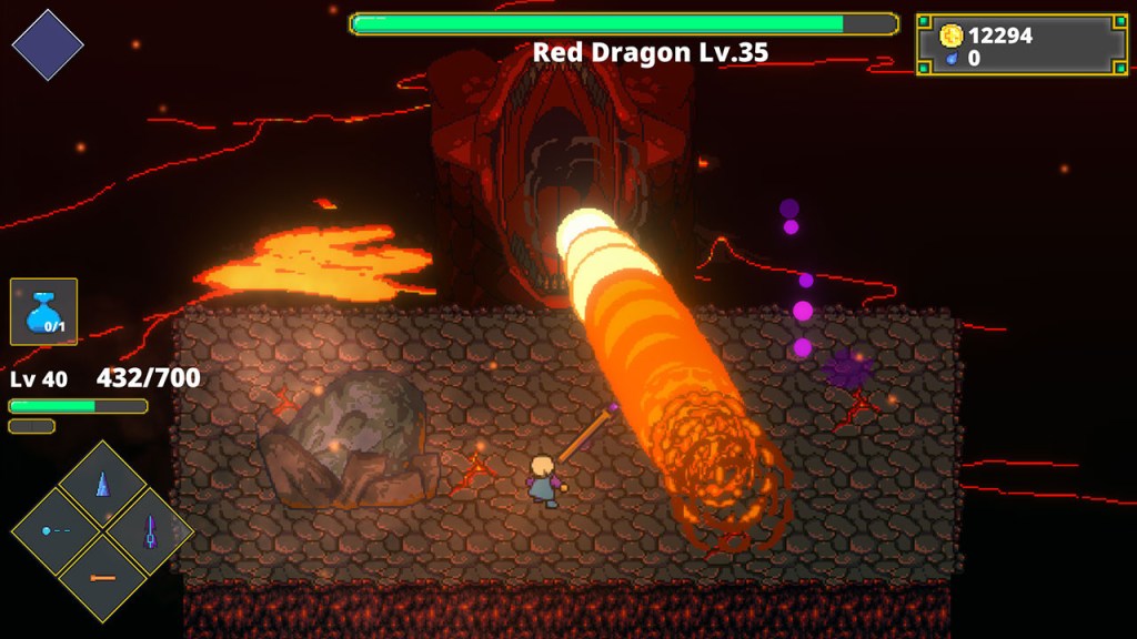 The risk of death is an ever present one too, as the player has but a single life with limited options when starting the game for the first time. There is a potion that is provided at the start of the game, with a single charge that gets refilled at the start of a dungeon. Over time, the player can unlock additional potion charges and even a revival item that can bring the player back for an extra attempt at the dungeon. Occasionally, there are fountains that can refill a charge on the potion but they can be rare.