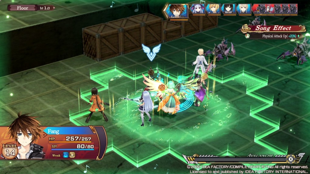 - Avalanche – this is a very special attack that can be used when the Avalanche meter has been filled up by units making actions. When the meter is full, unleash a massive attack that will damage all enemies within ranched, with an enhanced version called a Harmonic Avalanche if activated with the Fairy Aria.