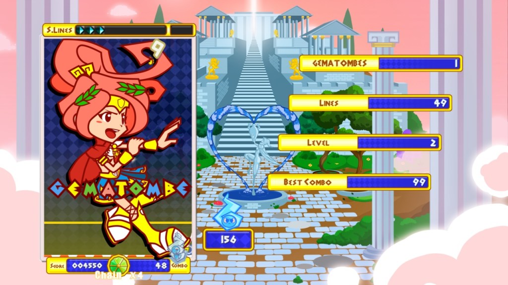 Presentation – the visuals are reminiscent of the titles it is inspired by, with sprites and character designs that are similar to that of Puyo Puyo, as well as other classic titles. These visuals compliment the feel of arcades that the game attempts to create, but there are some minor issues with slowdown at times during play. The sound adds to the experience, with music that fits each of the character themes, giving more depth and life to the overall presentation of this release.