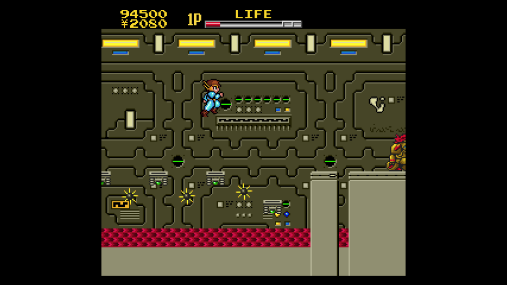 Controls – as Shockman is a PC Engine title, the game only uses two buttons, with one for jumping and the other attacking. With the porting of the game to modern consoles, there are also quality of life improvements that have been made to the game. These changes include new UI navigations that players are familiar with, as well as the ability to modify the controls to suit the individual preferences of each player.