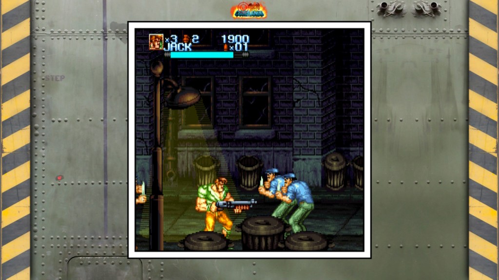 Just like the other title in this collection, Iron Commando features 2 player co-op multiplayer, with both players working together. There is also a lack of friendly fire, which is a positive as that can be very frustrating when playing a beat ‘em up, due to the swarms of enemies on screen. The same option to share lives is also here, as well as being locked out when all lives have been lost.