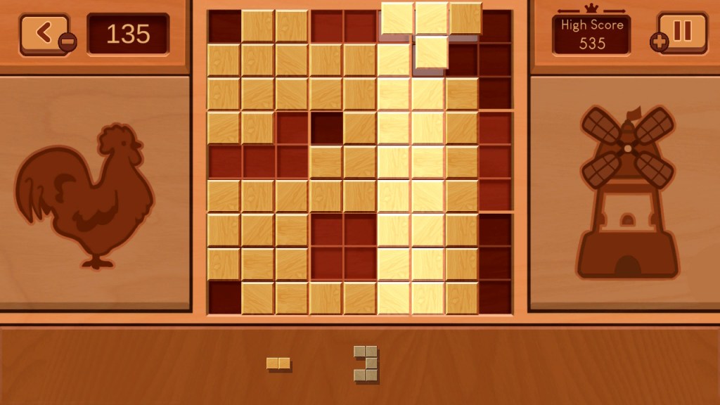 Gameplay – Timberdoku is a puzzle game, taking the concepts of traditional block puzzle games where players must fit pieces together on a grid. In this iteration of the block puzzle, players must slot the randomly provided pieces together, creating lines and 3X3 squares within a set area. When a line or square has been completed, the blocks will be erased, allowing for new pieces to be placed on the board earning points along the way.