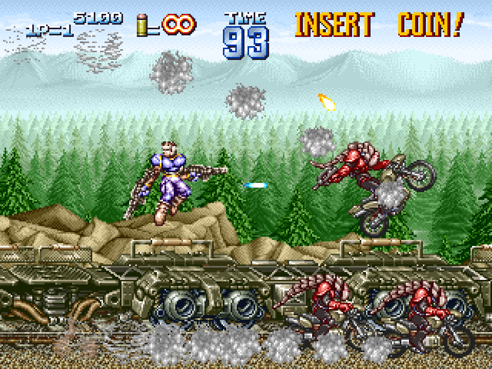 This follow up to the first GunForce is often seen as the predecessor to Metal Slug, the legendary military style shooter series from SNK and Nazca Corporation. In this release the player takes on another invading force, with the players taking the roles of Max and Lei. These soldiers must run and gun their way through 5 missions, where they will battle soliders, aliens and more as they make their way through a post-apocalyptic setting.