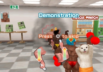 Muscle March is a mix of action and puzzle, where the player selects one of seven bodybuilders from a colourful cast of characters. These include Radimov, a Russian punk with a Mohawk and headphones, Brenda, a British muscle girl with pigtails and Rossi, the Norwegian bodybuilding polar bear. There are two gameplay modes for this game, Arcade, which is a single player challenge and endless rush, the multiplayer party mode.