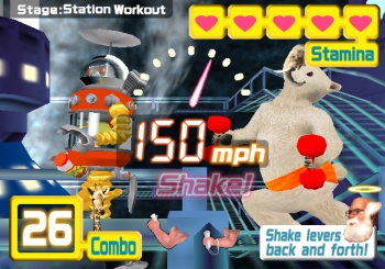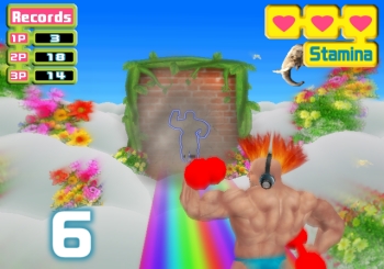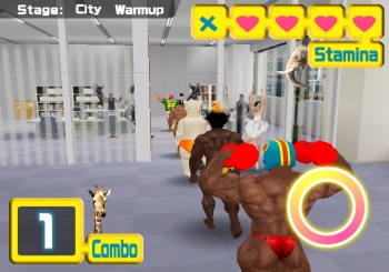 With every successful pass, the combo counter will increase. But if the player fails to match the shape, they will take damage and lose a stamina heart. When all 5 stamina hearts are lost, the game will be over and the player must try again. As the stage progresses, the other bodybuilders will be eliminated, dropping out of the chase with the speed increasing. When all other characters have been taken down, the final phase occurs.