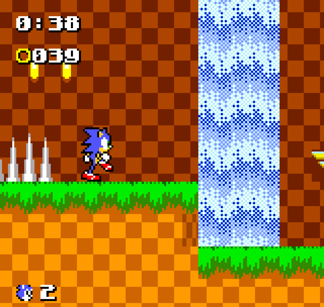 The game itself is made up of 7 zones, alongside a special secret zone 8. All of the zones aside from the final and secret zone are made up of two acts, with the second having a boss battle. The core objective for each of the main zones is to get from the start to the goal, collecting rings and avoiding the hazards of the stage. There are many dangers in the stages, with spikes, deadly pitfalls and numerous robotic Badniks that will try to kill sonic.