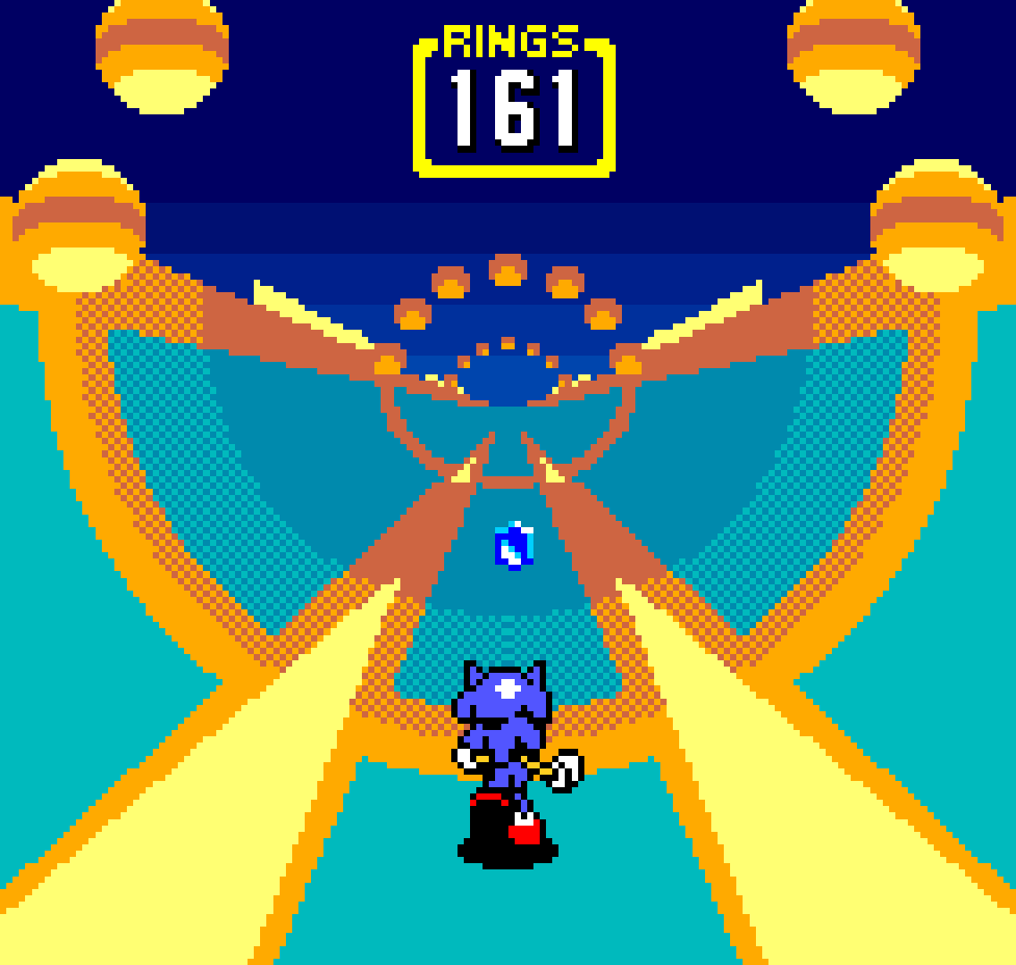 The special stages are taken directly from Sonic 2, with Sonic running through a half-pipe, needing to collect rings to match targets, while avoiding bombs. During the special stages, there will be three targets to match, increasing in number as each one is passed. If the target is missed, the stage will end, but if all three are passed, Sonic will get a chaos emerald, with 6 of them to collect in special stages. Players can also collect continues in bonus stages.