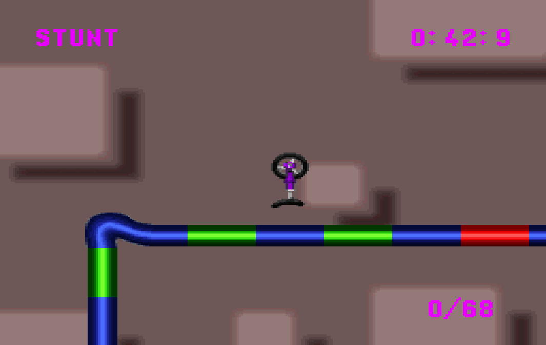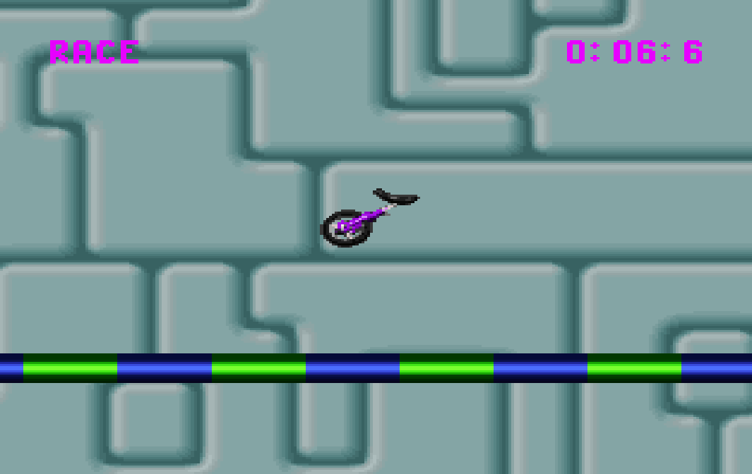 Unirally is a rather unique 2D racing game, where the player controls sentient unicycles. The objective of the game is to obtain medals, completing events separated into Tours. Each Tour has 5 events, with two single lap races, two multi lap circuits and one stunt challenge. When starting the game, there are four Tours that players can access, with humorous names like crawler and shuffler. These different names have animals tied to them, like snails and frogs.