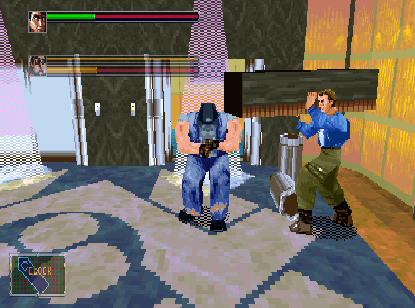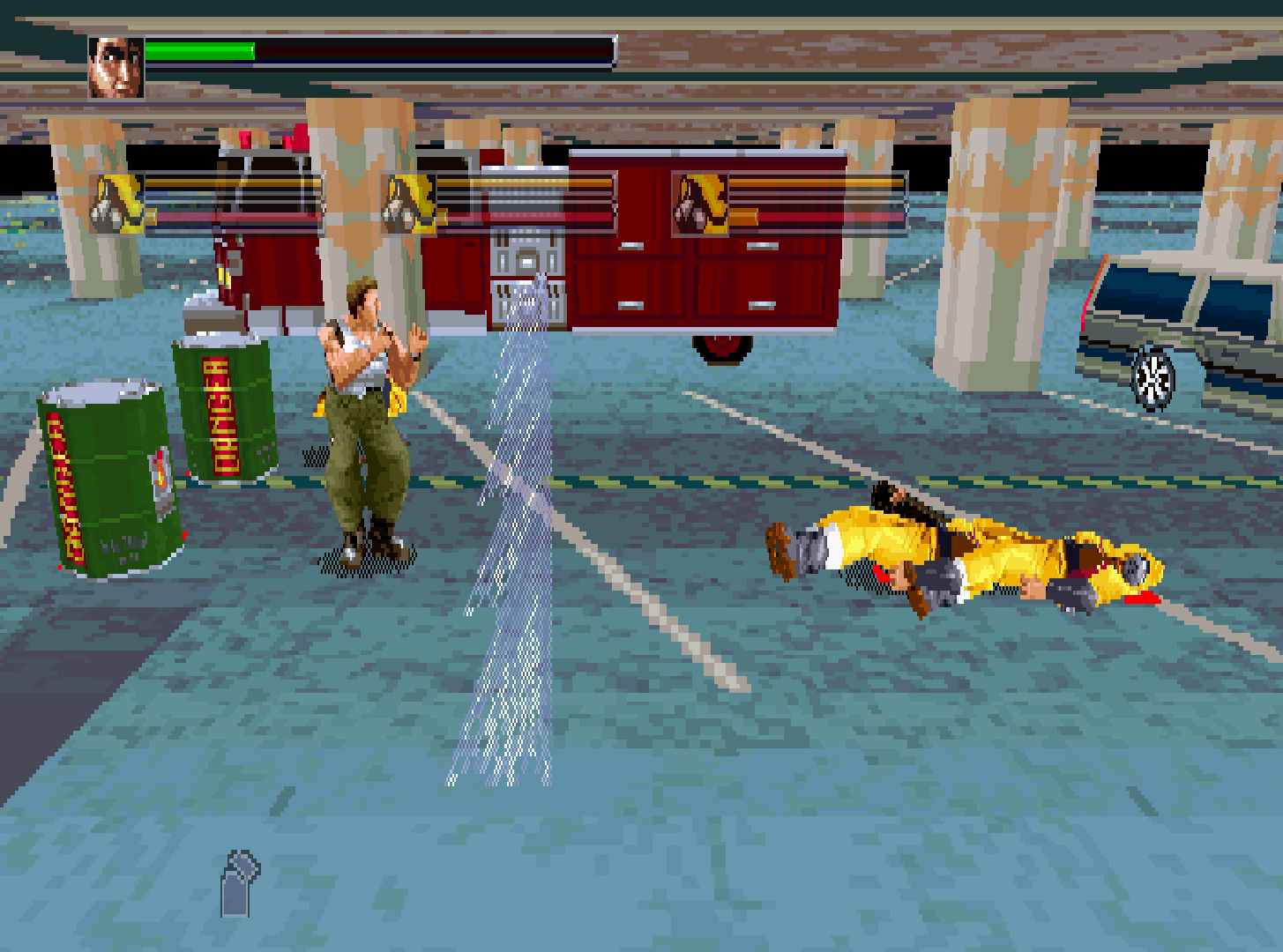 To make this more of an engaging and entertaining game, SEGA really took the concept of Die Hard and ran with it. I really like the addition of the laser blasting robots, as well as the the football player in a weird mask and the hulking fire fighter as bosses. SEGA even added environmental hazards to some areas, with a fire truck that uses a water canon and a radio antenna that travels across the roof. All of these combine to make possibly the best 3D brawler of the time.
