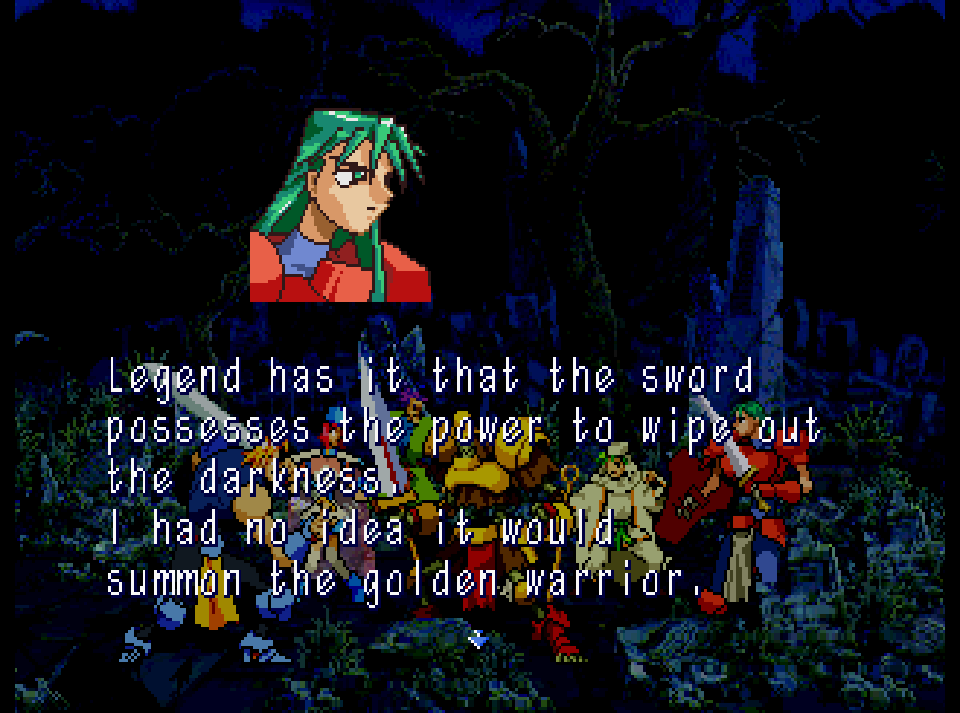 After rendezvousing at a nearby graveyard, they are attacked by a mechanical soldier, leading to a desperate battle that seems to have no hope. Suddenly the legendary sword is struck by lightning, which results in the original owner rising from a nearby grave. This legendary warrior destroys the robotic foe with ease. The undead knight is a hero of legend, who’s resurrection has set in motion a series of events that will change their world forever.
