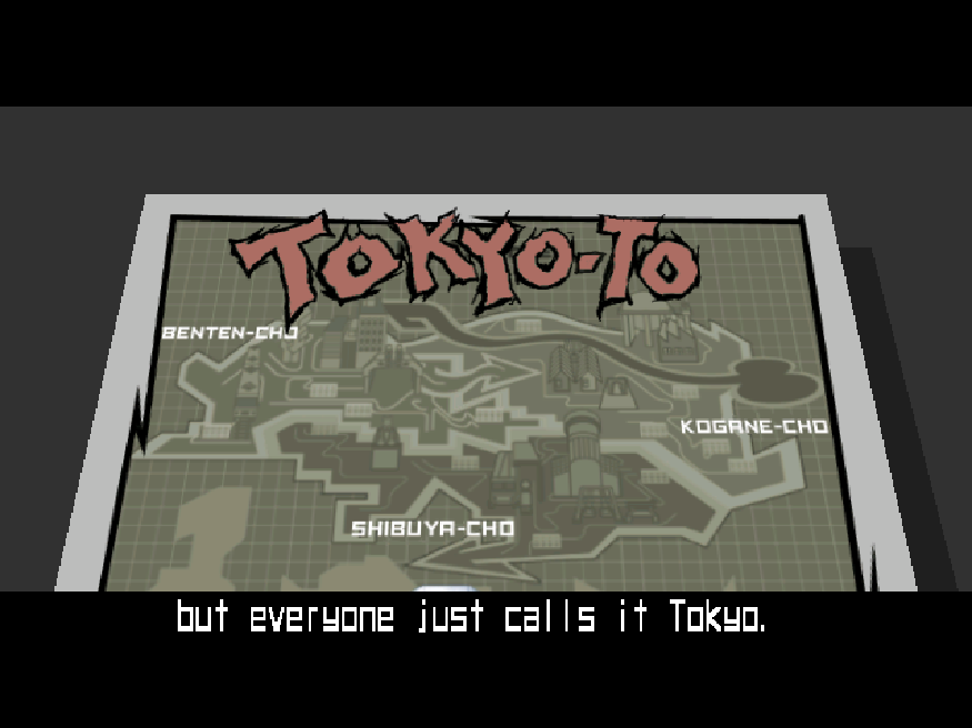 All of these events are relayed through DJ Professor K, the host of Jet Set Radio, a pirate radio station that plays non-stop hardcore music for his listeners. He also covers the ongoing turf wars between the graffiti crews, who each operate in the different zones of Tokyo-to. These gangs are The GGs in Shibuya-cho, the Noise Tanks of Benten-cho and the Poison Jam of Kogane-cho, but there are additional rogue groups and skaters in these territories.