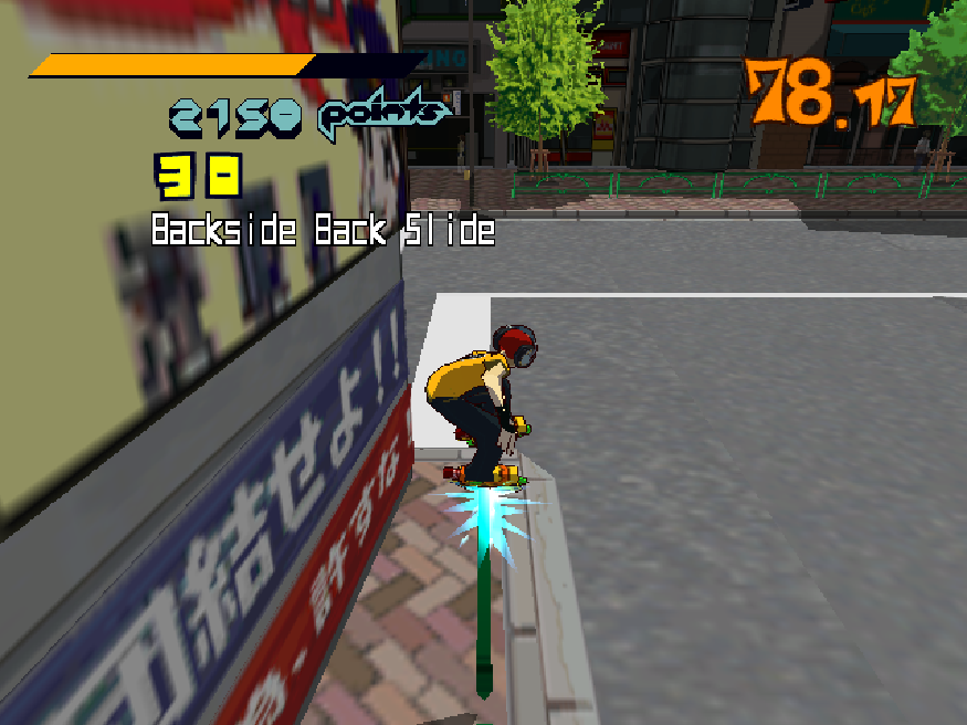 At the start of the game, the player starts with Beat, the leader of the GGs and recruits Gum and Tab to join him. These three skaters, then encounter the Love Shockers, a rouge crew looking to take control of the GGs turf. During their attempt to reclaim the territory, the police lead by Captain Onishima appear, ready to arrest the skaters for their crimes. With this the adventures of the GGs go into overdrive, across the streets of Tokyo-to.