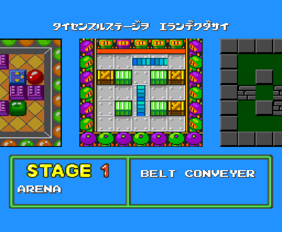 This title has two gameplay modes for players to select from, with the option of Normal Game and Battle Game. The Normal Game is the single player experience, where the player will make their way through 56 levels, split into 7 worlds. Each of the 7 worlds contains 8 stages, with the final stage of each being a boss battle. During the standard levels, the player must navigate the mazes, using bombs to destroy blocks and fight enemies.