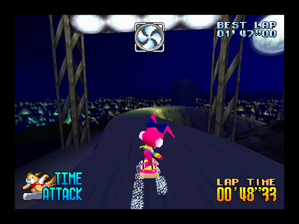 If all six of the races can be cleared, additional courses will open up, providing more challenges for players to take on. If these courses can be cleared, there are additional secrets that can be found. Away from the main Battle Race mode, there are two extra options for players to challenge in single player action. The first is Time Attack, which allows players to pick a course and challenge for the best time, with a single fan to help get them to the goal faster.