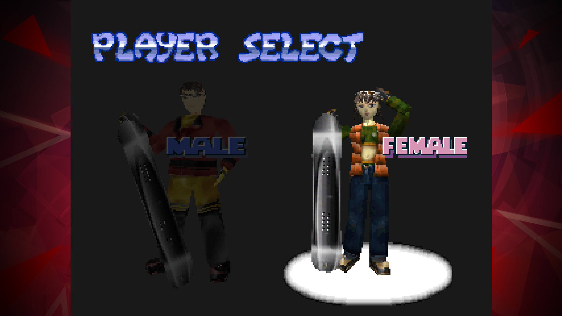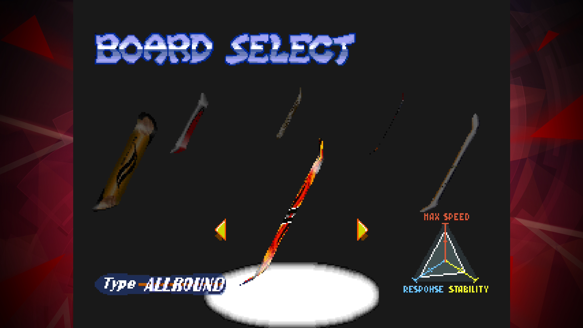 The six different boards have four color options, which will change the look of the board to give them some variety. When the board has been chosen, the player gets to select their rider, with male and female options available. The two playable characters have four different styles available, with unique looks for them that have that distinct 90s charm. If players can clear a secret set of conditions, there is also a special rider that can be unlocked.