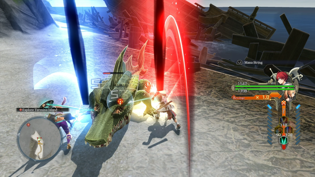 By slaying the Griegr and monsters, Adol and Karja will both gain experience, levelling both of them up together and increasing their power. As levels increase, the player will be able unlock new skills by opening up Release Lines, a skill tree that opens up as the duo gains levels. This system allows the player to use Mana Seeds, which will provide benefits based on the type used. In this screen, players can build their own unique builds for the two characters.