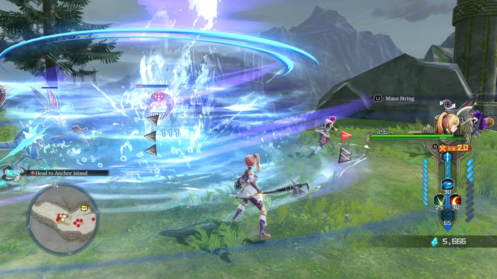Players will also be able to unlock special powers called Mana Actions. These skills will allow the player to reach previously inaccessible areas, opening up exploration options during the adventure. The Mana Actions include the Mana String, which is a whip like skill that will let Adol and Karja to swing across gaps. Then there is Mana Ride, which uses the Gullinboard to cross dangerous terrain, as well as use rails to reach inaccessible areas.