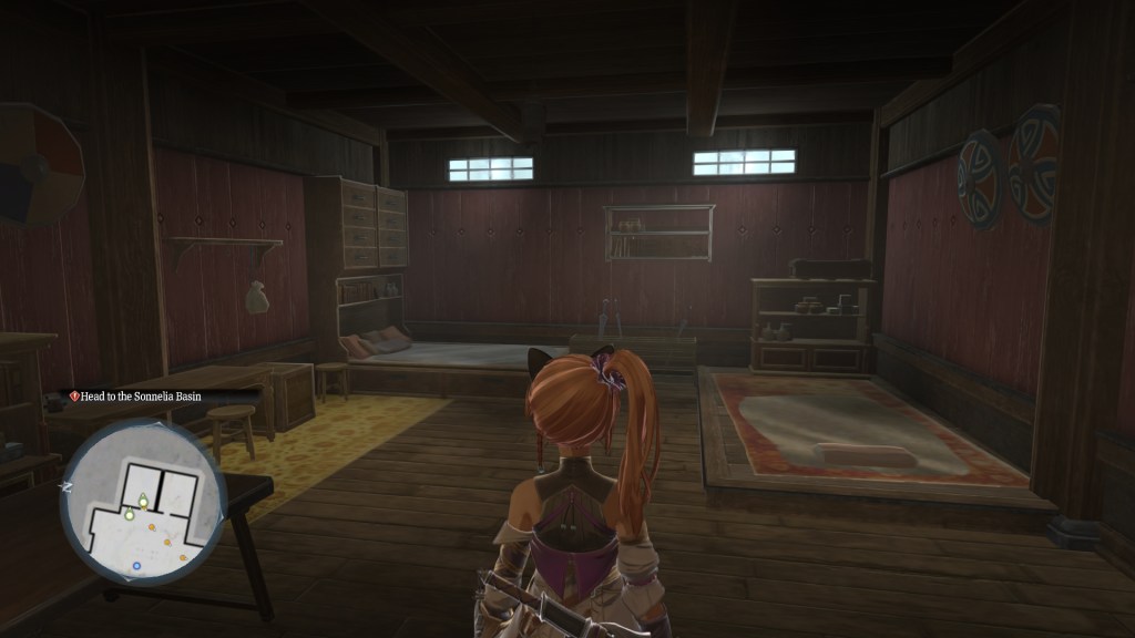 If the player wants to take a break from sailing, they can step away from the helm and explore the Sandras. As the player moves around the ship, they will be able to interact with those who have come aboard the ship. There are also facilities that can be used, with the ability to create potions and medicines to recover in the field, as well as food to provide a range of effects. As new crew join, the options and facilities for the player will increase.
