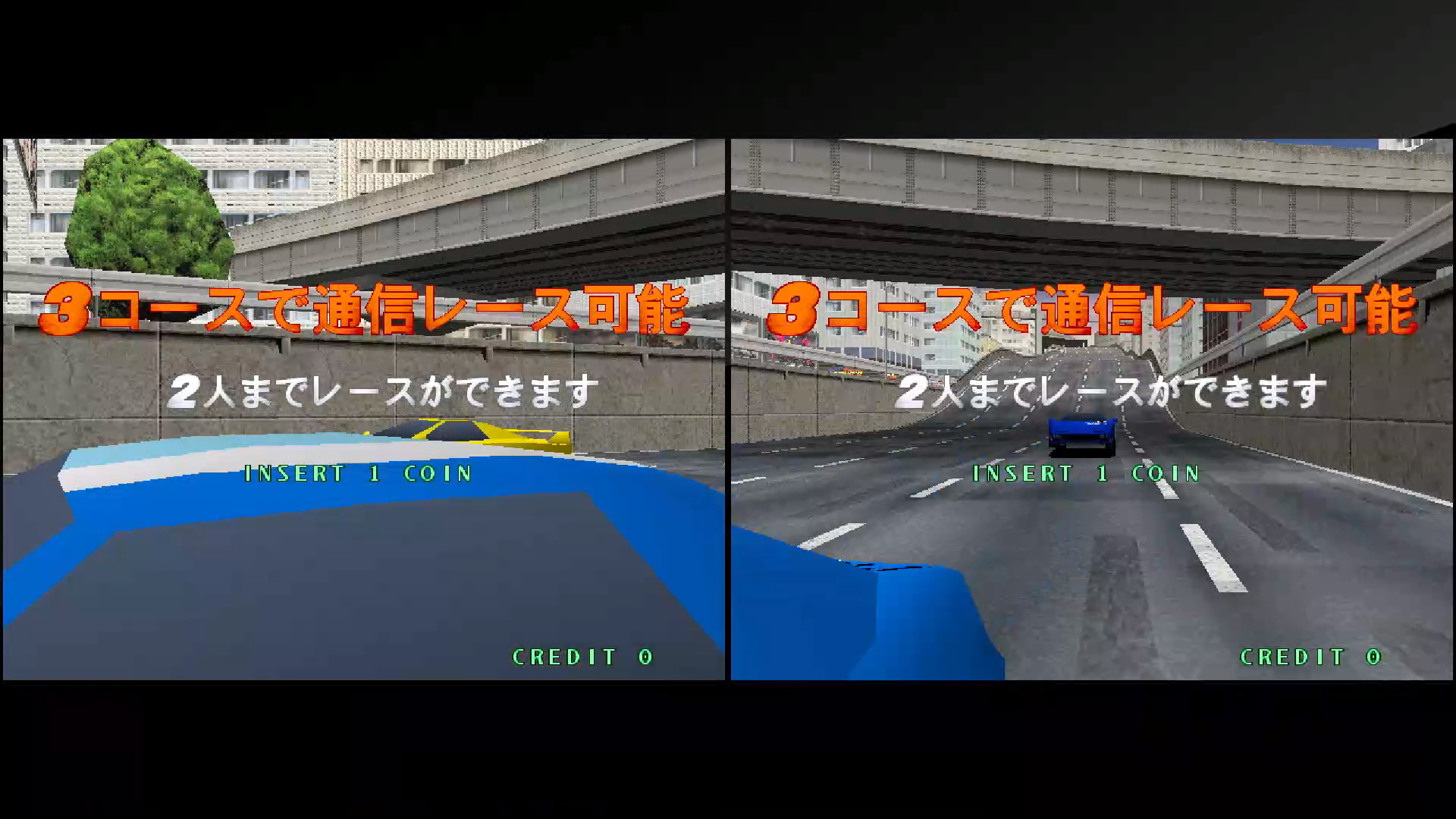 Ridge Racer was released in 1993, with a numbered sequel as Ridge Racer 2 in 1994. Then in 1995, Rave Racer was released in the arcades on the Namco System 22 Arcade Hardware, offering single machines or Dual cabinets in Standard and Deluxe varieties. The Dual Cabinets are special, as you could connect up to four of them in sequence for 8 player multiplayer games. This was a year after SEGA released DAYTONA USA, which had an 8 player variant.