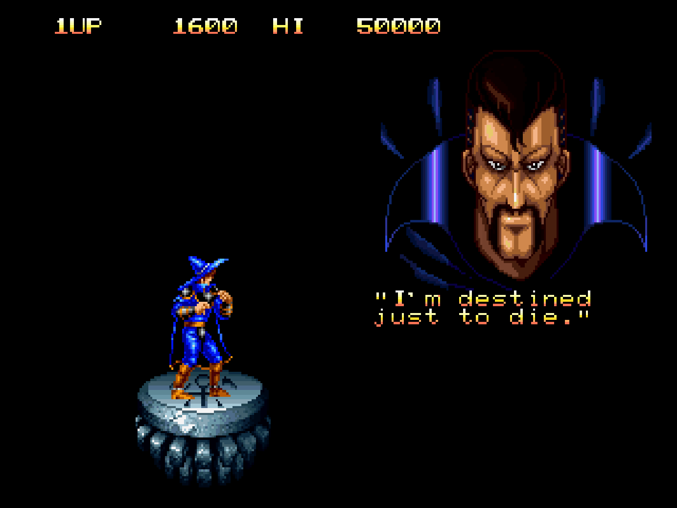 Magician Lord was a launch title for the NEOGEO MVS, while also being one of the launch titles for the AES home system. It has a lot of importance to it culturally, being a showcase for the system that boasted 24-BIT with a total memory capability of 330 MEG (MEGABIT) for the games. Magician Lord came in at 46 MEGBIT, which was the over 5 times bigger than any other cartridge game at the time, with the limit being between 4 -8 MEGABIT for other systems.
