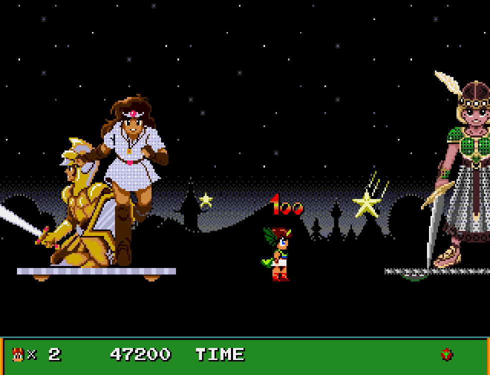 When a stage is cleared, the player will receive bonuses based on various factors, which will add to the total score for the game. The player has a set number of lives for the game, which can be adjusted in the settings. Lives are lost by making contact with enemies and bullets, with the hitbox being a star on the character. when the player runs out of lives, they will get the option to continue, being granted Magic Cards as a bonus.